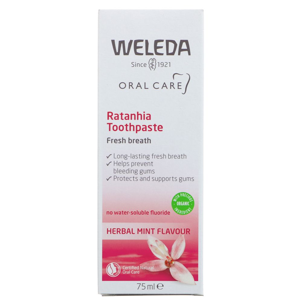 Dental care is about healthy teeth and gums. Weleda toothpastes are free from synthetic additives of any kind, and contain specially selected plant ingredients to maintain oral hygiene to keep breath fresh. Contains soothing ratanhia, used for its astringent properties, to naturally strengthen gums and help keep mouth and gums in good condition. Peppermint and spearmint leave your mouth feeling refreshed.
